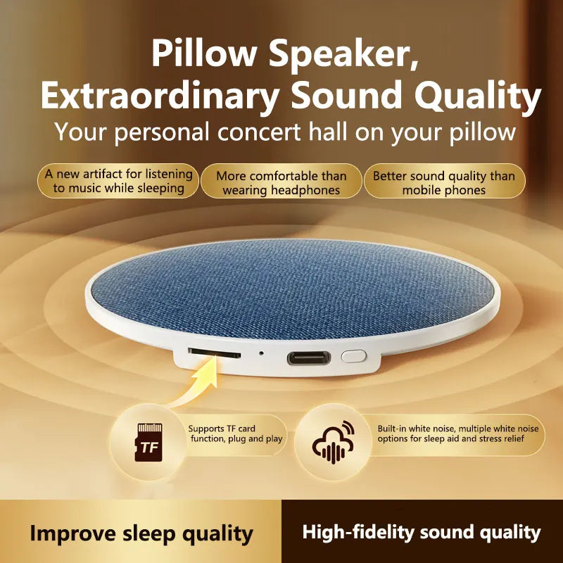 Tired of disturbing your partner with late-night music or audiobooks? Or annoyed by uncomfortable headphone wearing when sleeping? Our Pillow Under Speaker is the perfect solution for your bedtime audio needs!