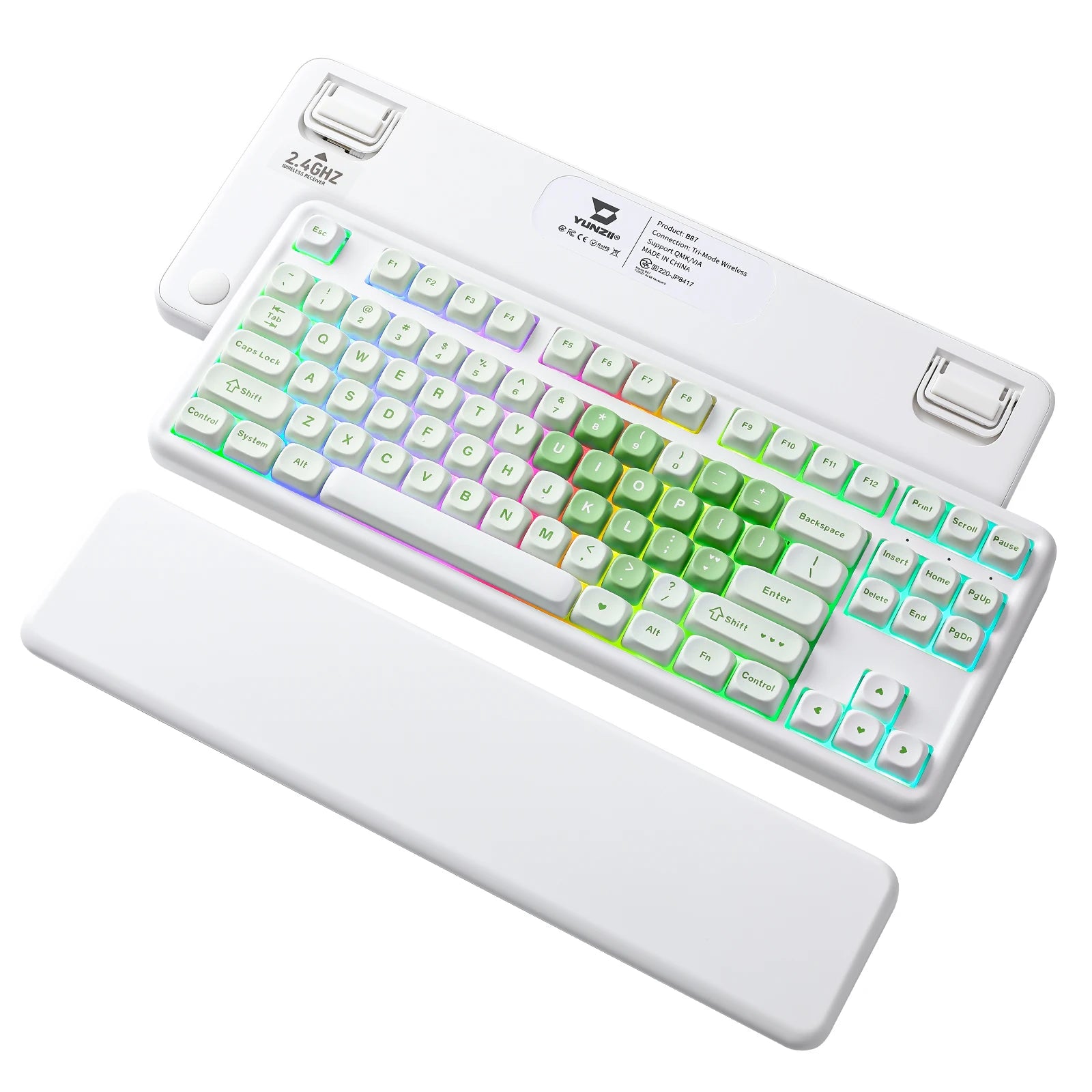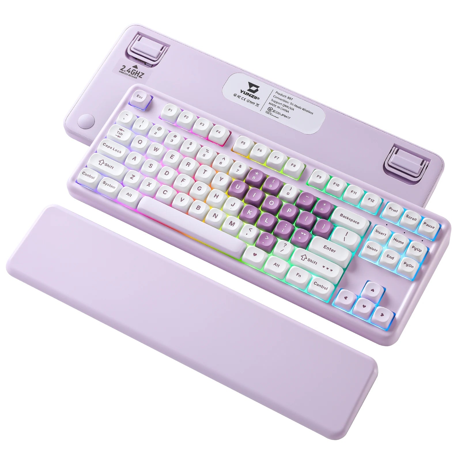 YUNZII B87 Heart Wireless Mechanical Keyboard, QMK/VIA Custom RGB Gaming Keyboard, Beauty Aesthetic Keeb, Wrist Rest for Win/Mac